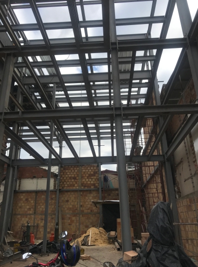 Con más de 1.300 m² construidos en estructura metálica, este proyecto combina la solidez de un espacio industrial con la practicidad de áreas administrativas y comerciales.